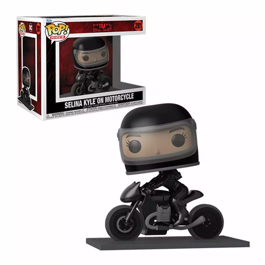 Figurine Funko POP! Selina Kyle On Motorcycle dans The Batman issue de la licence officielle DC Comics.