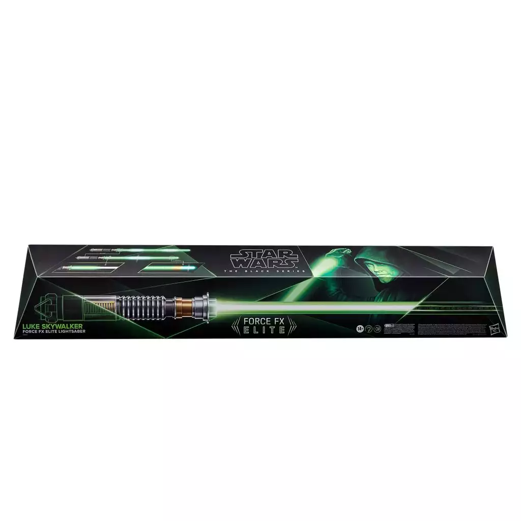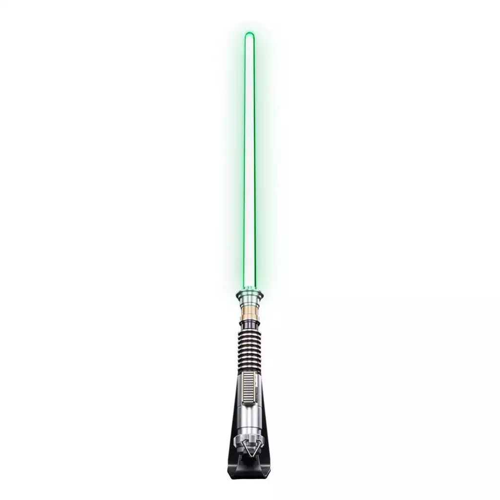Ce sabre laser présente un design et une décoration basés sur le sabre laser vert emblématique de Luke Skywalker, que l’on retrouve dans tous les films Star Wars, de Star Wars : Le Retour du Jedi à The Mandalorian et Le Livre de Boba Fett.