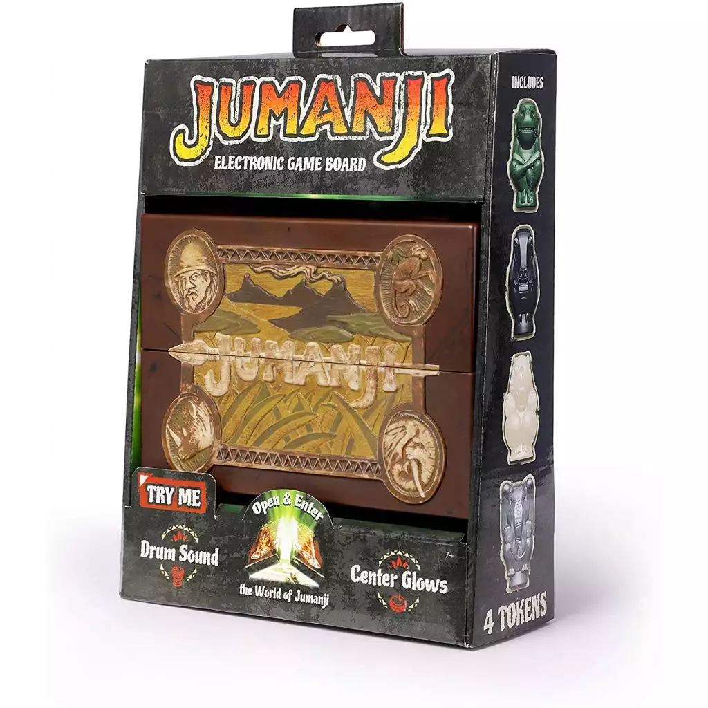 Attention, aventure en vue ! Réplique électronique du jeu Jumanji. Grâce au son des tambours et du logo lumineux au centre du plateau, retrouvez l’ambiance du film et prolongez l’expédition dans cette jungle aussi dangereuse que fascinante.